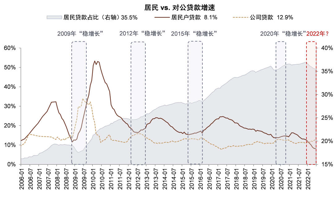 图表6:对公贷款增速2022年以来开始高于居民贷款