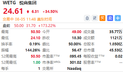 悦商集团涨超34%,消息面上,该公司与集庆生物洽谈战略合作,计划全球独家销售猴痘病毒检测试剂盒和抗原检测,共同开拓国内外市场。