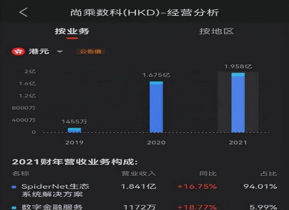 尚乘科技之所以如此值钱,一方面是因为其背靠李嘉诚这个大树,拥有较为庞大的资金链,另一方面是因为其发展方向,当然主要的还是因为后者。尚乘科技的业务主要是金融以及蜘蛛网的生态解决方面。