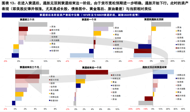 所谓“抢跑”,具体指当前交易逻辑已经相当于历史上衰退发生且通胀见顶阶段。回顾70年代以来衰退前后和内部的资产表现,当前的资产表现组合(美股反弹且成长股领先、债券居中、黄金落后、原油最差)对应的往往是衰退已经发生且通胀见顶的阶段,与当前阶段存在差异。此外,7月非农大超预期也意味着一些可能的变数。