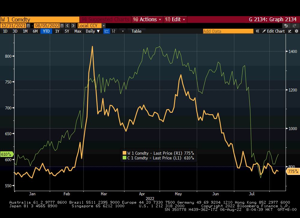 年初至今,小麦和玉米期货价格