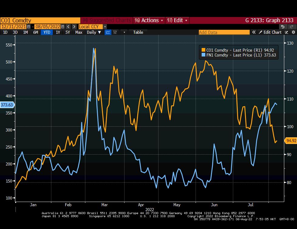 事实是,在过去的几个月里,许多导致通胀失控的因素已经消退(劳动力市场紧张、供应短缺、供应链中断和需求压抑)。俄乌冲突爆发后,飞涨的食品和能源价格,给通胀带来了意想不到的负担。目前,能源价格已经回落,小麦和玉米价格也回落至2月24日之前的水平,这让我们感到相当安慰。联合国粮农组织世界食品价格指数7月份暴跌8.6%,自3月份以来连续第4个月下跌。周五,又有三艘运送谷物的货轮运送5.8万吨谷物从乌克兰起航,穿过黑海。粮食出口的情况可以作为其他大宗商品的模板吗?