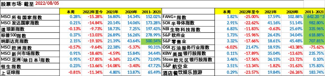 各市场指数2022年初至今及往年的表现对比