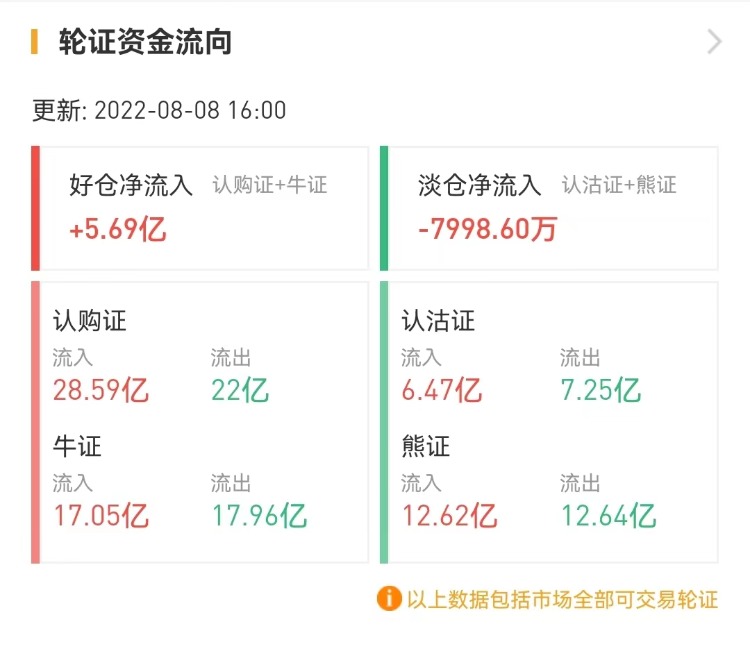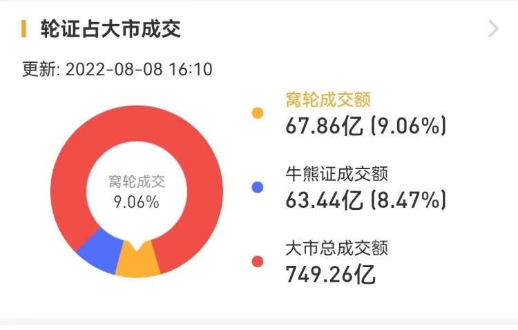 其中,窝轮总成交额为67.86亿港元,牛熊证总成交额为63.44亿港元。