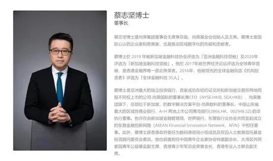 据了解,蔡志坚在今年3月退任尚乘IDEA集团CEO,将投行业务交给他人,但仍是尚乘集团董事会成员,负责整个尚乘集团的战略发展。