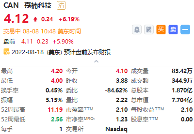 嘉楠科技 $CAN 涨超6%,消息面上,比特币24小时内涨超5%,站上24000美元关卡,以太坊涨至1773美元。