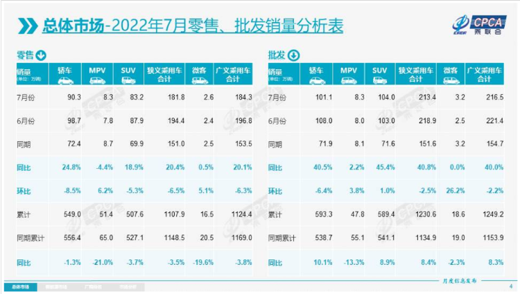 8月份全月工作日有23天,较7月工作日多2天,有利于产销增量。目前国内疫情控制日趋有序稳定,目前产能释放顺畅,各地生产恢复良好,8月乘用车生产能力很强,由于2021年8月的缺芯严重低迷,今年8月预计产销同比实现高增长,可实现淡季不淡的良好局面。