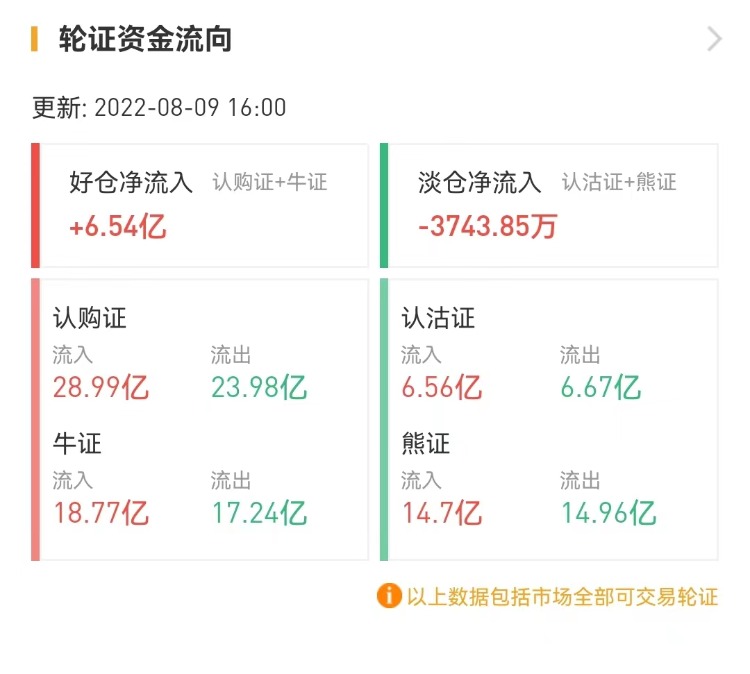其中,窝轮总成交额为69.44亿港元,牛熊证总成交额为68.62亿港元。