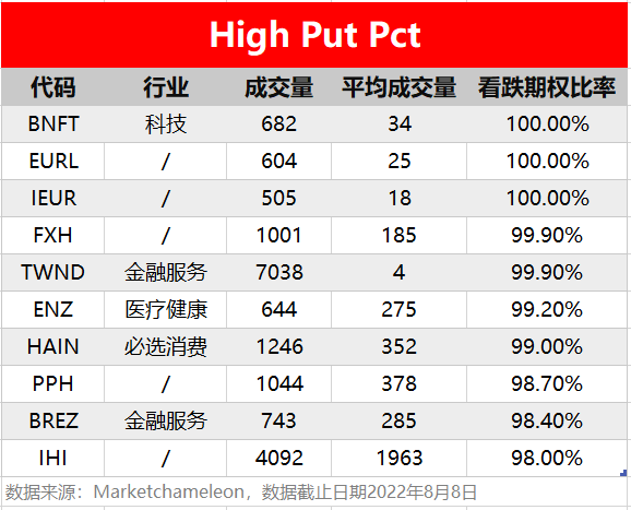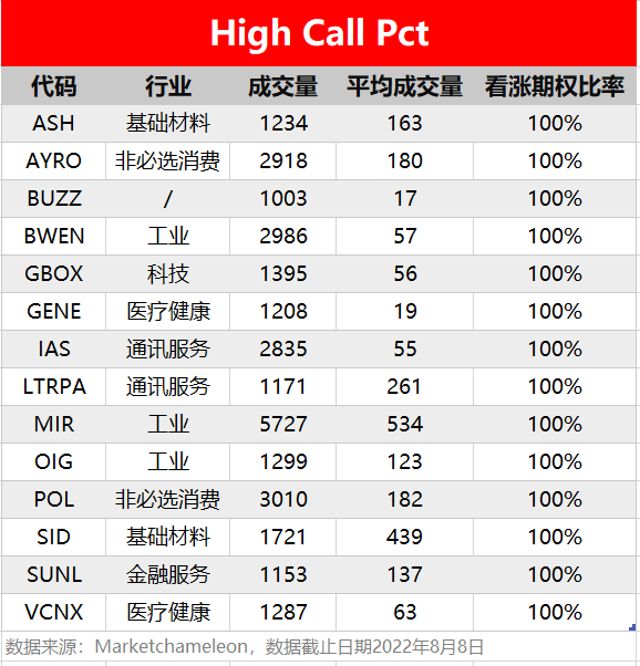 注:High Call Pct/High Put Pct是指相关期权标的当前看涨/看跌比例大小,该比值越高意味着该期权标的看涨/看跌的合约占比越高。