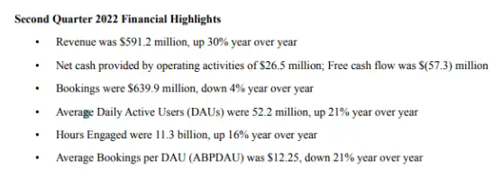 日活跃用户数(DAU)也低于预期,增长速度放缓。Roblox表示,其日活跃用户数为5220万,同比增长21%,但低于第一季度28%的增幅。市场此前预期为5400万。