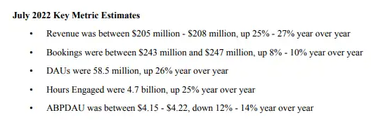 尽管市场对Roblox的二季度业绩感到失望,但Roblox 表示业务正在改善。6月份,人们在该平台上花费了近40亿小时,7月份Roblox的日活跃用户达到了5850万,创下了历史新高。