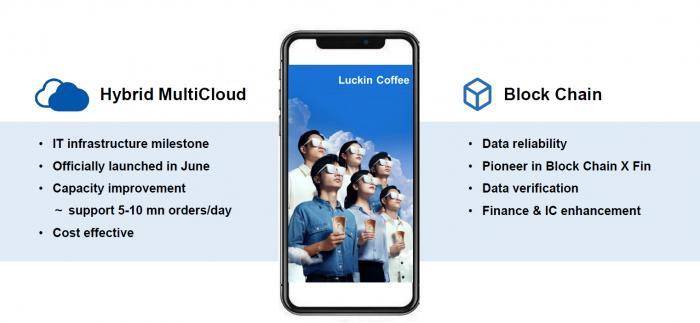 郭谨一在发布会上分享了瑞幸咖啡Q2的两项技术成就,一是混合多云项目,二是将区块链技术引入运营和财务数据管理系统。