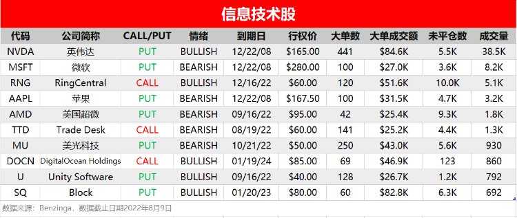 周二(8月9日),非必选消费、信息技术和医疗健康相关个股出现较多活跃单,按照当日成交量排行,榜单TOP 10分别如下: