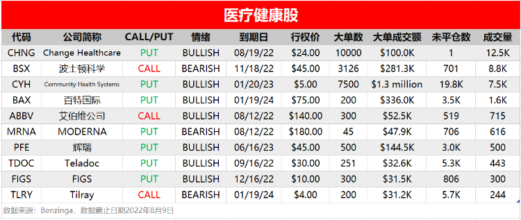 今日榜单TOP10: Change Healthcare、波士顿科学、Community Health Systems、百特国际、艾伯维公司、MODERNA、辉瑞、Teladoc、FIGS、Tilray。