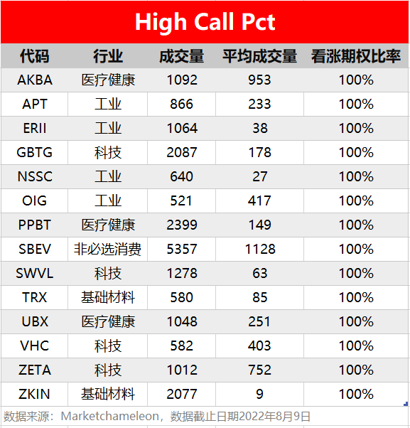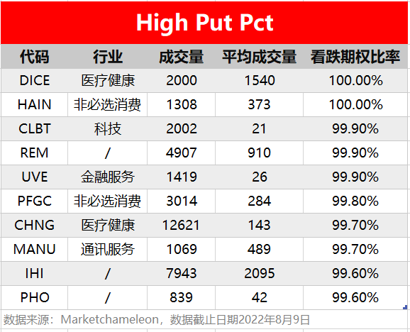 注:High Call Pct/High Put Pct是指相关期权标的当前看涨/看跌比例大小,该比值越高意味着该期权标的看涨/看跌的合约占比越高。