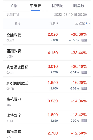 (截图来自新浪财经APP 行情-美股-中概股热门板块)下载新浪财经APP