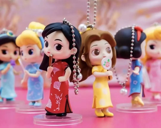 据此前网友的爆料,在错误的贴文中,西班牙运营商使用了“Geishas”一词,意为“艺妓”、“歌妓”,但图片中的6个迪士尼公主钥匙扣盲盒,却都身着各色中式旗袍。