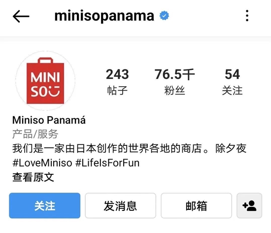 尽管目前名创优品不论是在官网还是线下门店,均已找不到任何与日本设计理念有关的描述,但在其未更新的海外社交媒体账号中,仍将品牌介绍为一家来自日本的全球连锁商店。