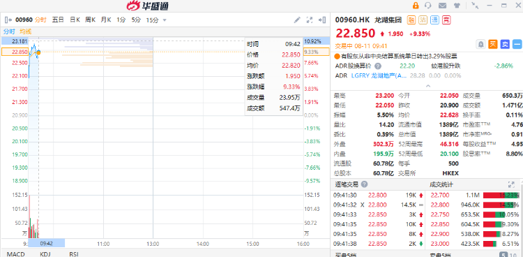 华盛资讯8月11日消息,龙湖集团早盘高开,截至发稿反弹超9%,报价22.85港元,公司股价昨日大跌16%。
