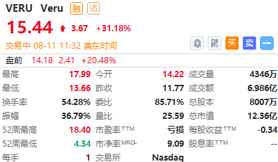 新冠口服药概念股Veru $VERU 盘中涨超30%,其首席执行官 Mitchell Steiner此前表示,随着秋冬季节COVID病例的激增,如果EUA获得美国FDA的批准,预计sabizabulin将在近期获得可观的收入,用于治疗 COVID-19(急性呼吸窘迫综合征)高风险住院患者。