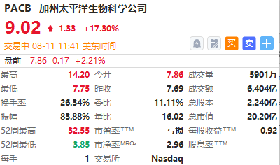 加州太平洋生物科学公司 $PACB 盘中涨超17%。据悉,Pacific Biosciences昨日出现较大份额的看涨期权单,隐含波动率增加近 16 个点至 100.97%。