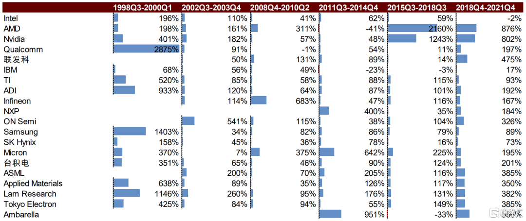注:主要芯片商包括Intel、AMD、Nvidia、TI、ADI、Qualcomm、Micron、Infineon、Maxim、Xilinx