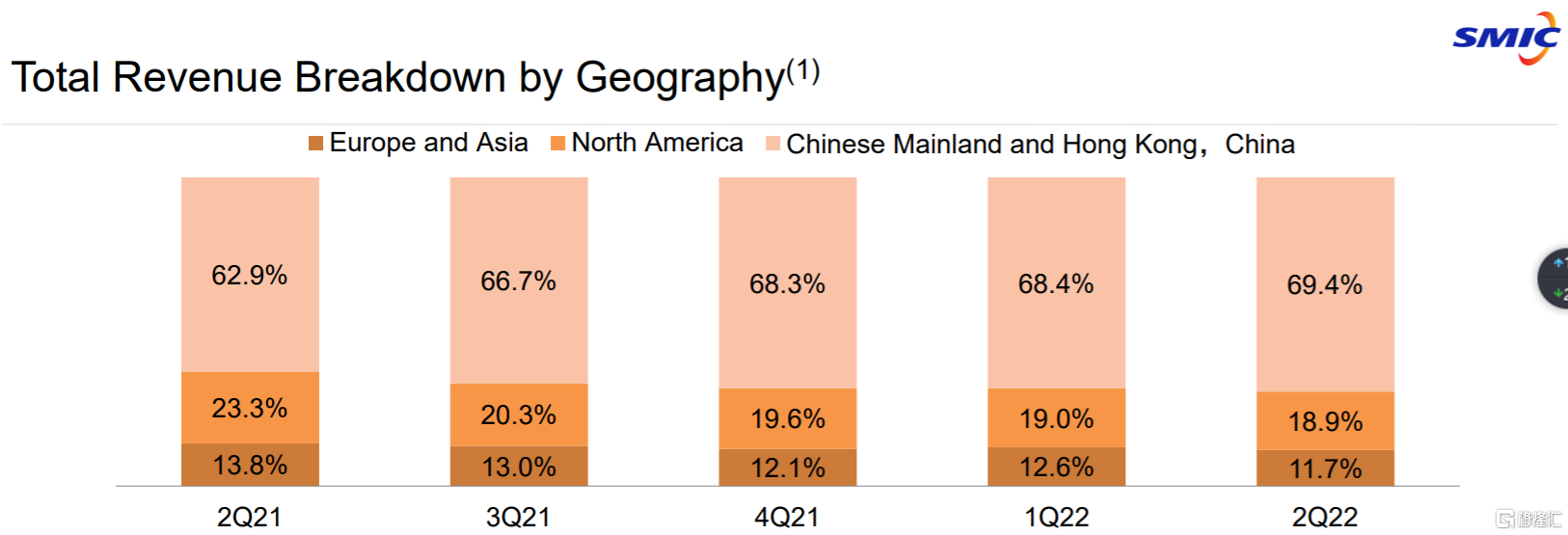 回到中芯国际内部来看,本次面临的下行周期也与以往有所不同。虽然说总的准备情况要比以前好,但是新的不一样之处在于疫情的不稳定的影响还是比较大。另外,中芯国际有7成业务来自中国,这就意味着中芯国际与中国地区的绑定比较紧密。