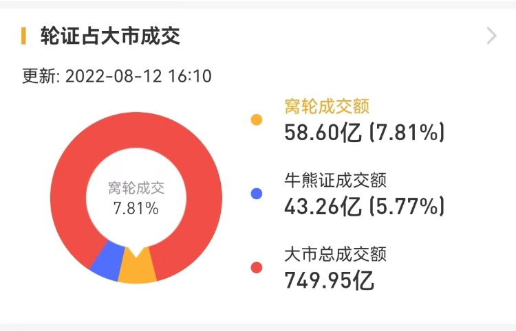 其中,窝轮总成交额为58.60亿港元,牛熊证总成交额为43.26亿港元。