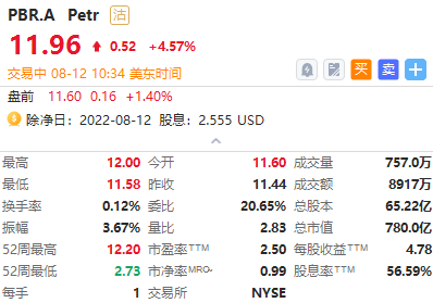 巴西石油公司 $PBR.A 涨超4%,巴西国家石油公司当地时间8月11日发布声明称,它已经开始为其在亚马逊盆地的钾矿开采权寻找竞标者。