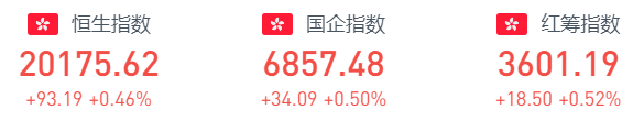 截至8月12日周五收盘,恒生指数上涨涨0.46%,报20175.62点;国企指数上涨0.5%,报6857.48点;红筹指数上涨0.52%报3601.19点。上周,恒生指数累计下跌0.13%;恒生科技指数累计下跌1.49%。