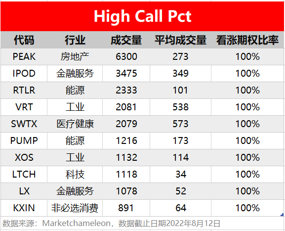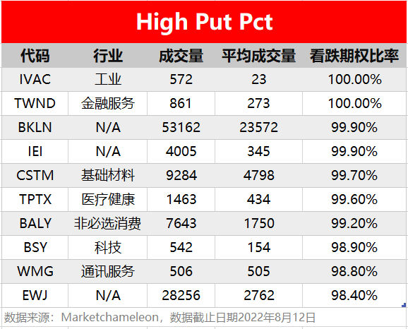 注:High Call Pct/High Put Pct是指相关期权标的当前看涨/看跌比例大小,该比值越高意味着该期权标的看涨/看跌的合约占比越高。