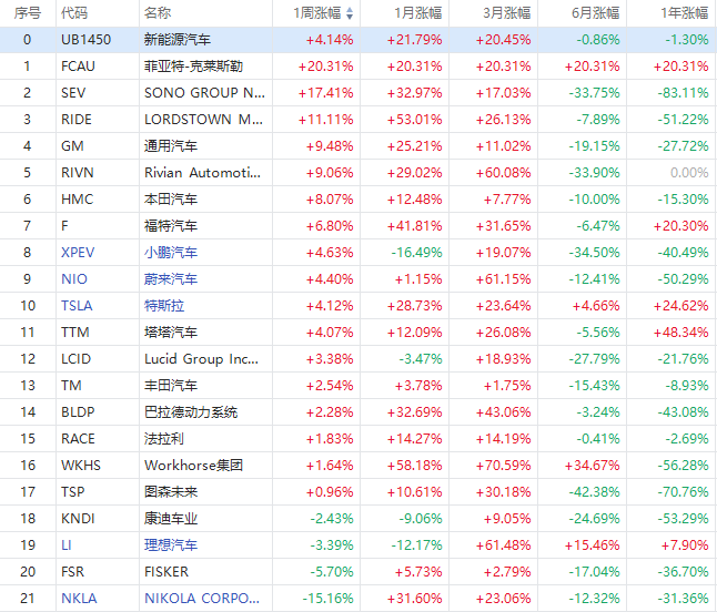 近期新能源汽车美股整体走强,特斯拉近一周涨超4%,Lucid 周涨超3%;Rivian累涨9.06%,二季度营收3.64亿美元超预期,全年业绩指引不及预期。