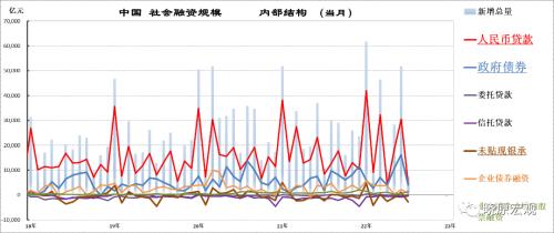 1、从社融内部分项数据观察:权重占比前两位的人民币贷款与政府债券双回落,主导了7月社融规模的下行。