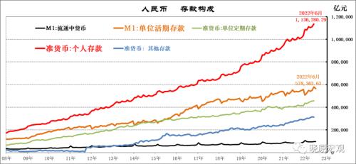 1、 从内部分项数据观察:M2的增长主要源于权重排位第一的居民存款的带动、权重排位第二的企业活期存款增速缓慢。