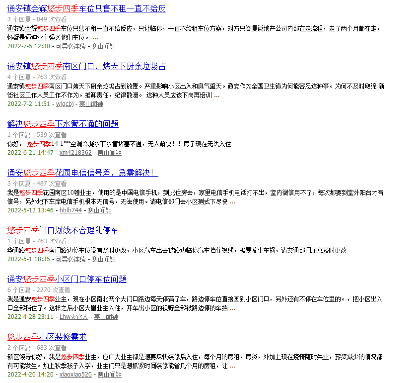 除此之外,寒山闻钟平台上还有有关小区人防车位出租、小区大门处车行出入安全隐患,以及小区大门口环境卫生等问题的投诉。此时距离项目真正交付不到5个月的时间......