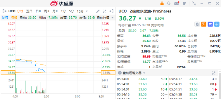 2倍做多原油ETF $UCO 盘前下挫超7%,2倍做多油气ETF $GUSH 跌约3%。