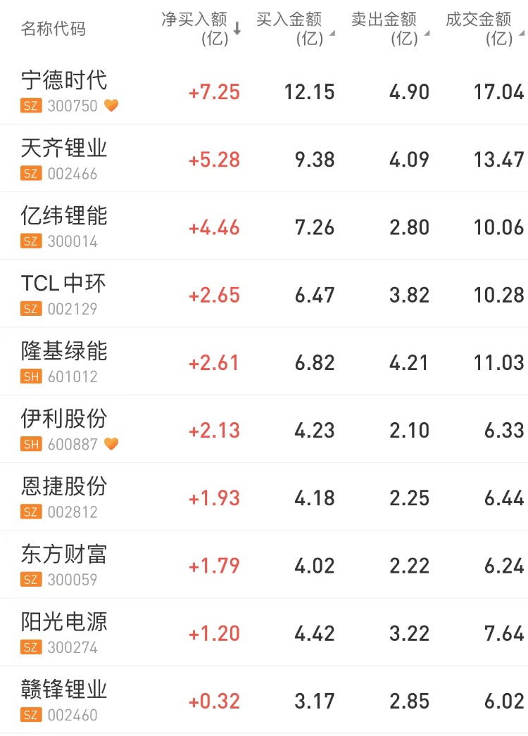 北上资金今日净买入宁德时代7.25亿元,为今日买入之最;净买入天齐锂业5.28亿元。