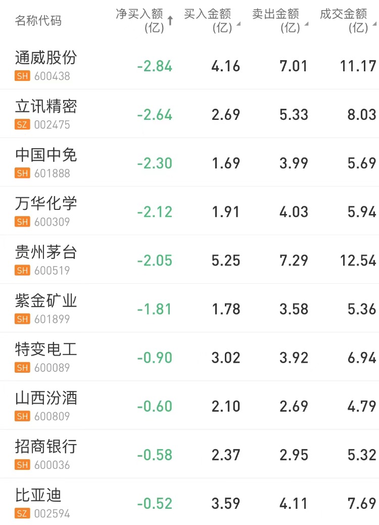 今日北上资金净卖出通威股份2.84亿元,立讯精密遭净卖出2.64亿元。