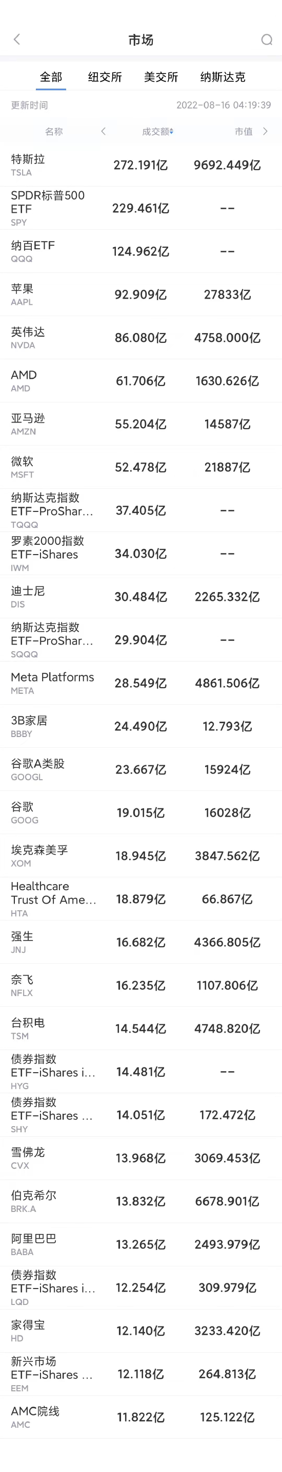 第2名苹果公司收高0.63%,成交92.9亿美元。据报道,苹果公司可能会将广告投放扩大到iPhone上的更多第一方应用程序中,以增加收入。该报道称,该公司目前的广告业务年收入约为40亿美元,但希望将该细分市场增长到“百亿级别”。