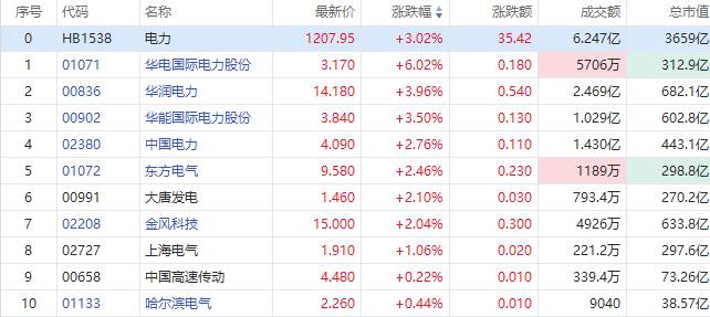 华盛资讯8月16日消息,港股电力股午后持续强势,截至发稿,华电国际电力股份涨6.02%,报3.17港元每股;华润电力涨3.96%,报14.18港元每股,成交额2.46亿港元;华能国际电力股份涨3.5%,中国电力、东方电气、大唐发电涨超2%,金风科技跟涨。