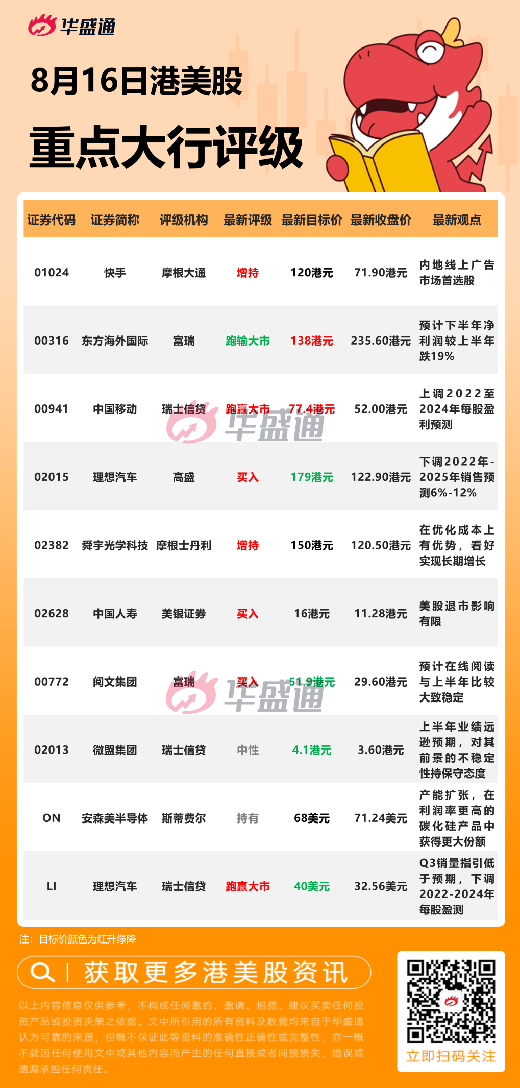 美银证券发报告指,中国人寿公布计划于美股退市,目标于今年9月初完成所有除牌及注销。由于其美国ADRs只占总股本的0.5%,该行并不认为美股退市将影响集团的业务基础,或于上海/香港的股份流动性。该行表示,本次国寿与另外四间国企从美股退市,并不代表预示其他ADRs的命运。美银证券予国寿“买入”评级,目标价16港元。