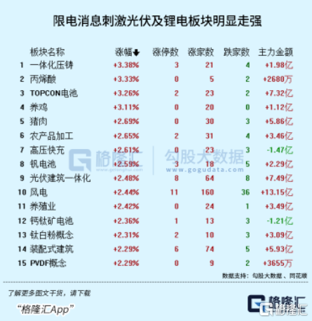 今年的限电限产已经从硅片和锂材料行业开始,然后我们看到了锂材料价格又开始上涨,这两天的这两个板块,因而表现最为强劲。
