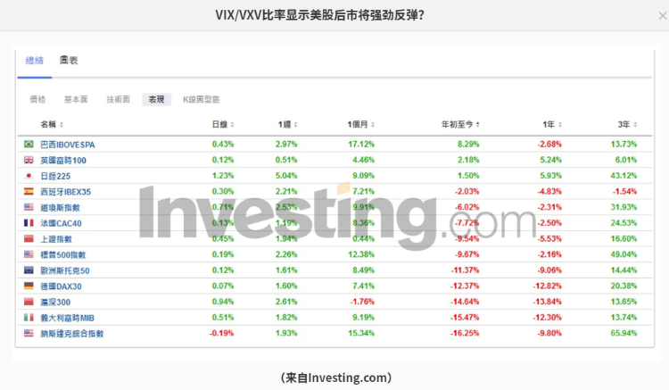 除了常见的VIX恐慌指数,我们不妨来关注VIX/VXV比率水平——VIX是1个月隐含波动率,而VXV是3个月隐含波动率。通常来说,VIX会低于VXV,因为理论上来说,时间范围拉得越长,不确定性应该越高,也就是说,3个月发生的事情比1个月内发生的事情更加具有不确定性。