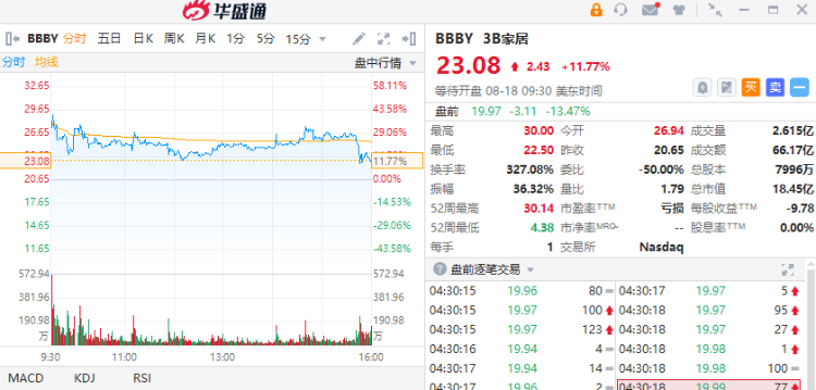 7、“散户概念股之王”申请清仓,3B家居盘前跌超13%