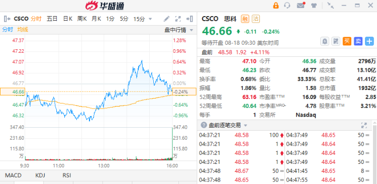 思科 $CSCO 美股盘前涨超4%,下季度营收指引超市场预期