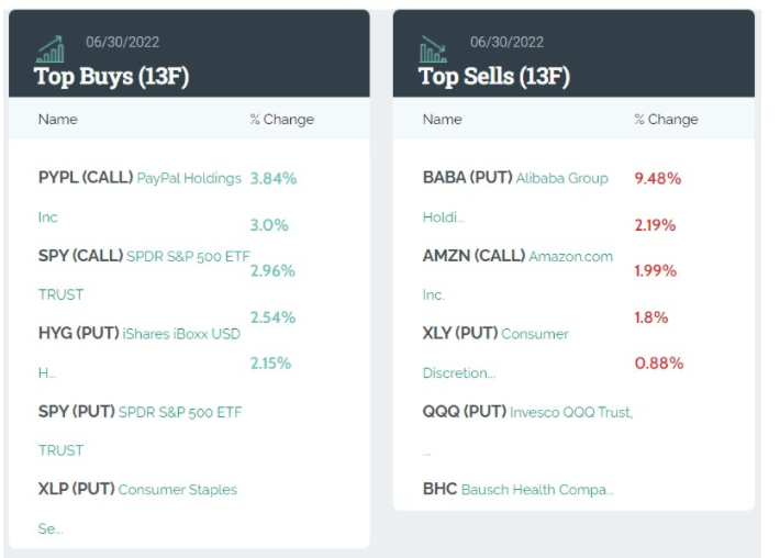 前五大卖出标的分别是:阿里巴巴看跌期权、亚马逊看涨期权、SPDR非必需消费品ETF看跌期权、纳指100指数ETF看跌期权、Bausch Health $BHC 。