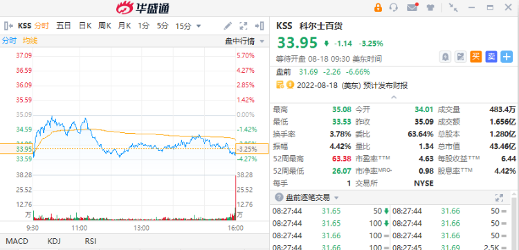 柯尔百货 $KSS 盘前跌超10%,二季度净利润同比减少63%