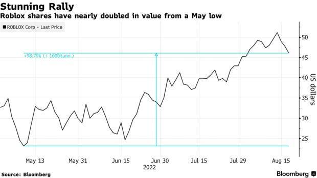 随着Roblox(RBLX.US)视频游戏平台用户的增加,乐观的投资者纷纷买入该股。Roblox周三美股收盘价为41.95美元,较5月21.65美元的低点几乎翻了一番,涨幅约94%。