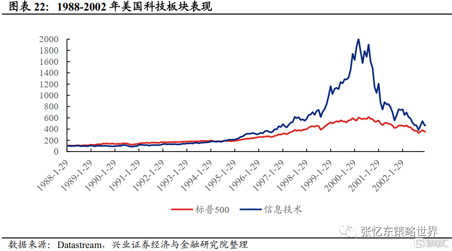 这一阶段的结构性因素,是科技行业在1995年-1999年有非常优异的表现。回顾历史,当时美国正经历了一轮大规模的计算机普及应用阶段,并随后开启了互联网时代。科技行业的股票受到了广泛的追捧。