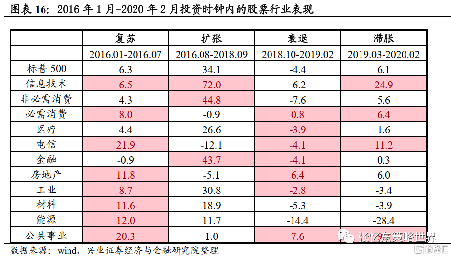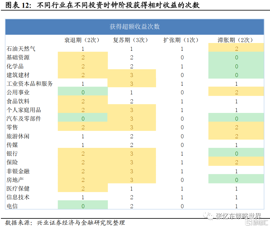 4.5、2009年7月-2020年2月投资时钟内的股票行业轮动总结